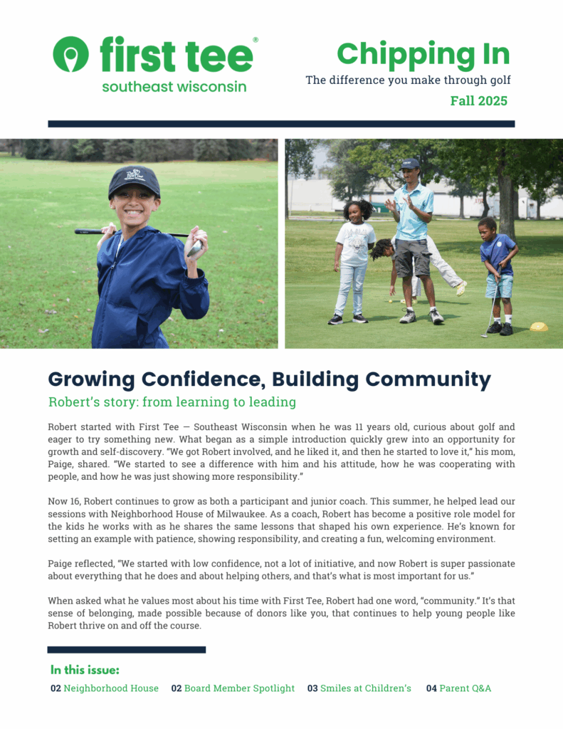 At First Tee — Southeast Wisconsin, young people are learning life lessons, finding mentors, building friendships, and gaining confidence that will shape their futures. Thank you for being part of the First Tee — Southeast Wisconsin community that make stories like Hayden’s possible.